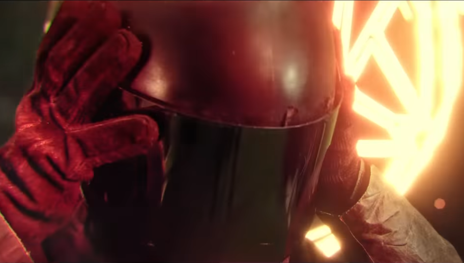Jonnie and Blake prepare to look for Vic (Jonnie Double doesn't need a helmet because he's inorganic - Blake puts on his black helmet)