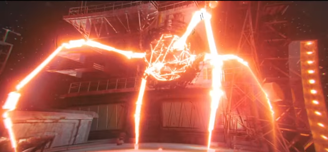 The Crane Spider driven by Louise opens the metal sphere so that Jonnie and Blake who pilot the Hedron-Ship can make it fly