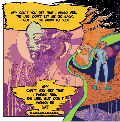 When they are finally inside the Hedron-Ship Jonnie adjusts the control board of the Hedron-Ship